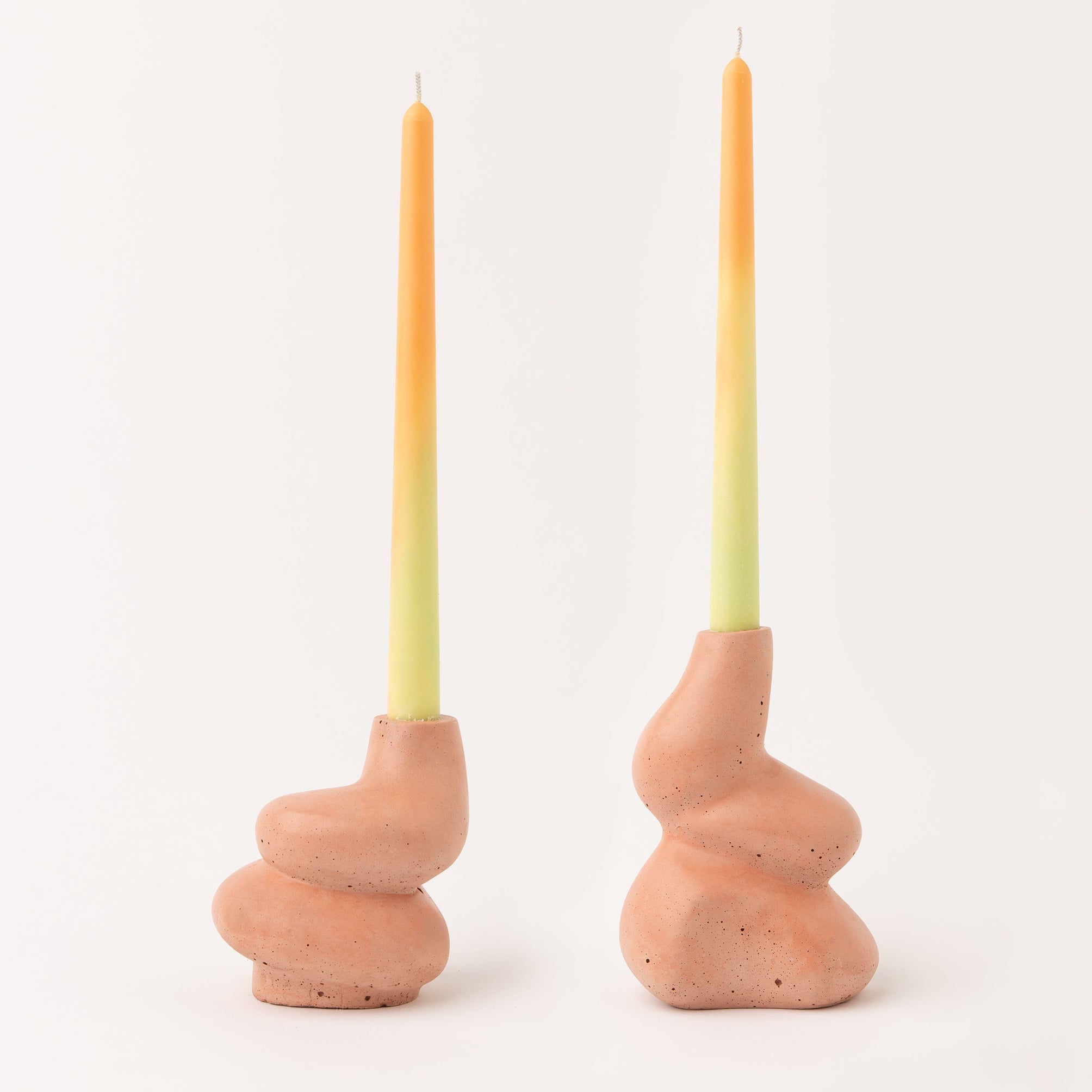 1. Bayhay Tapered Candles – Pair, £16; The Cuddle – A Pair of Little and Big Glob Candle Holders in Babe, £60, Smith & Goat