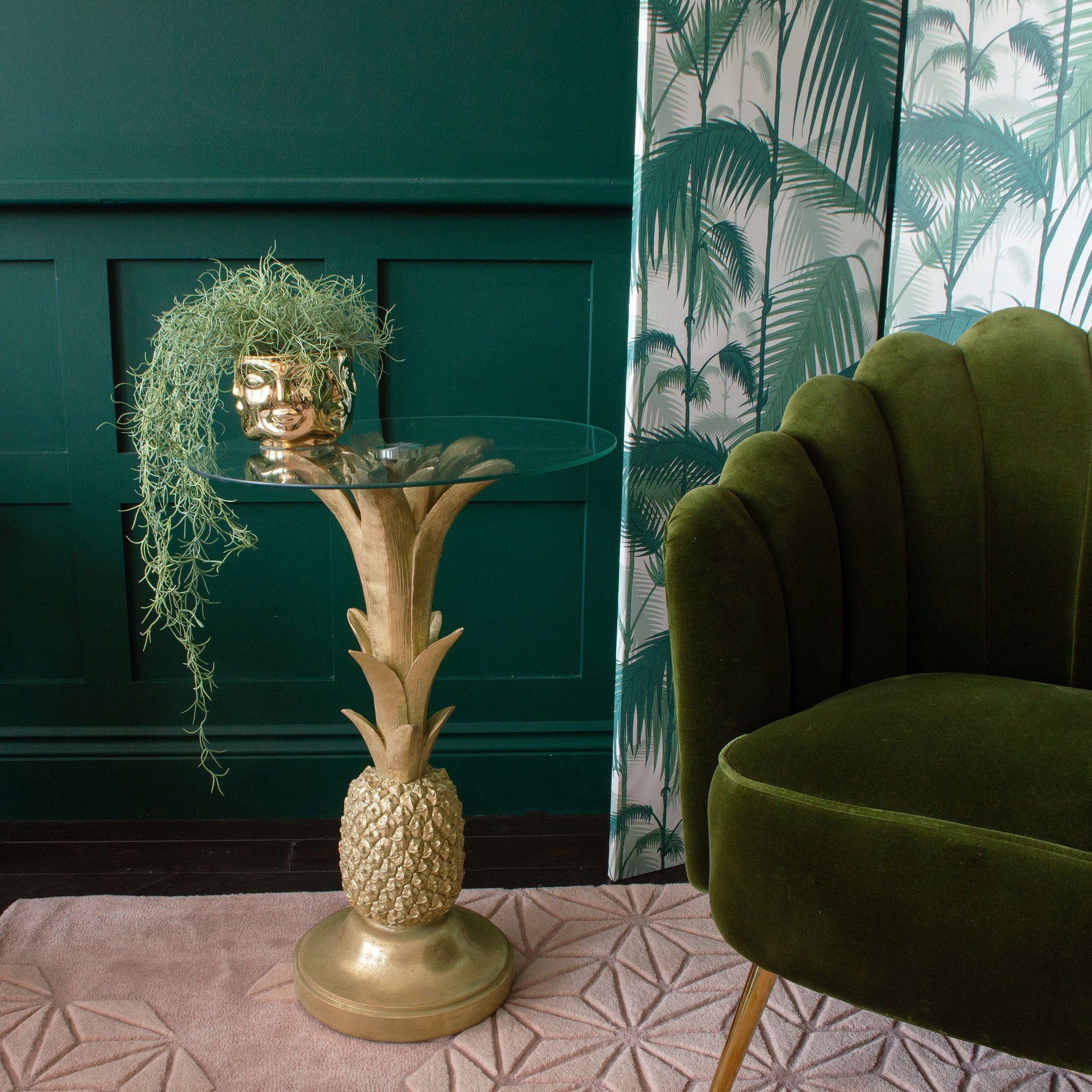 An essential for cocktails or glass of vino, a glamorous gold side table in the shape of a pineapple evokes thoughts of happy hour on a sun-drenched terrace, under the shade of a swaying palm (if only!).