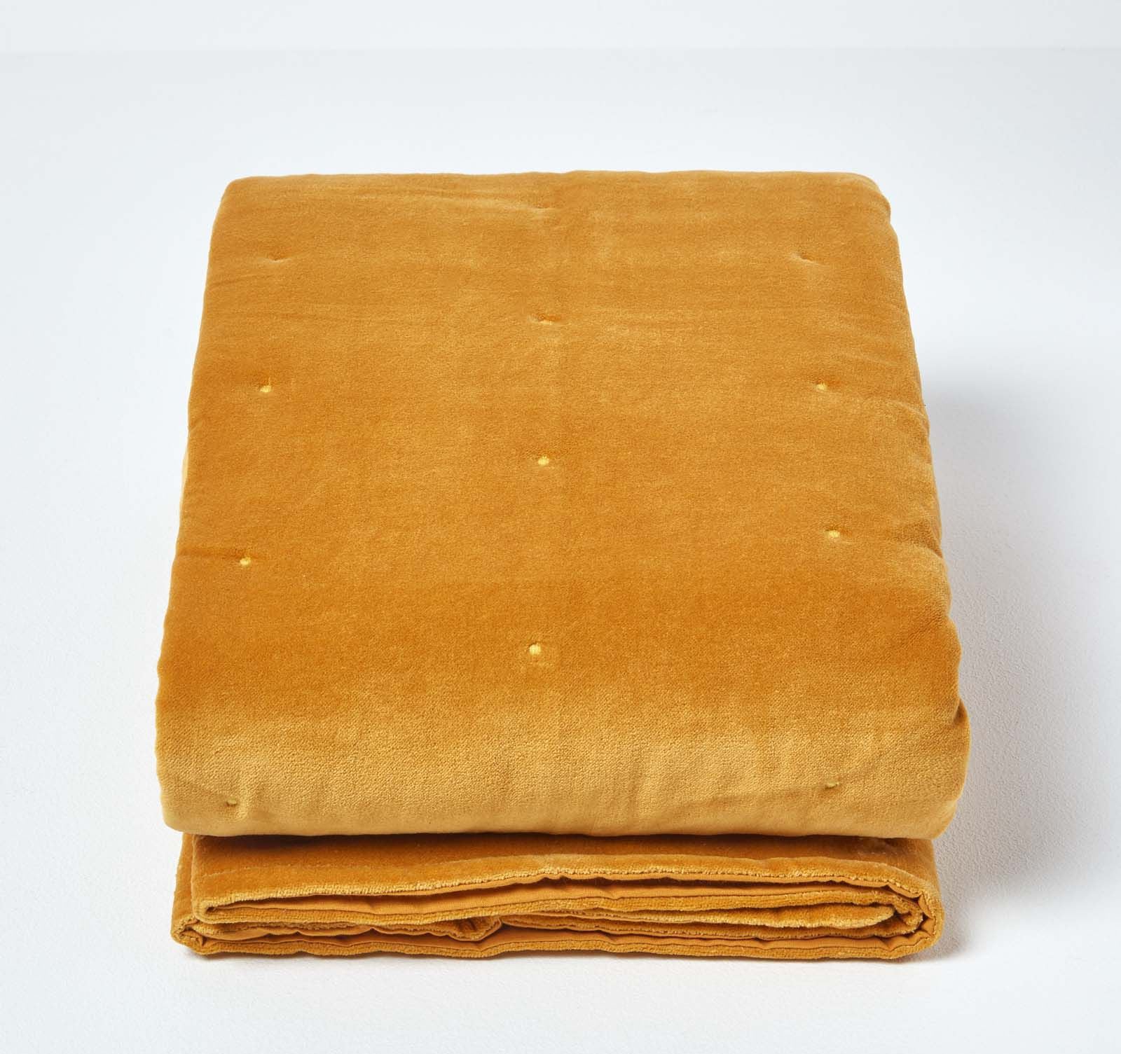 7. Mustard Velvet Quilted Throw, from £29.99, Homescapesonline