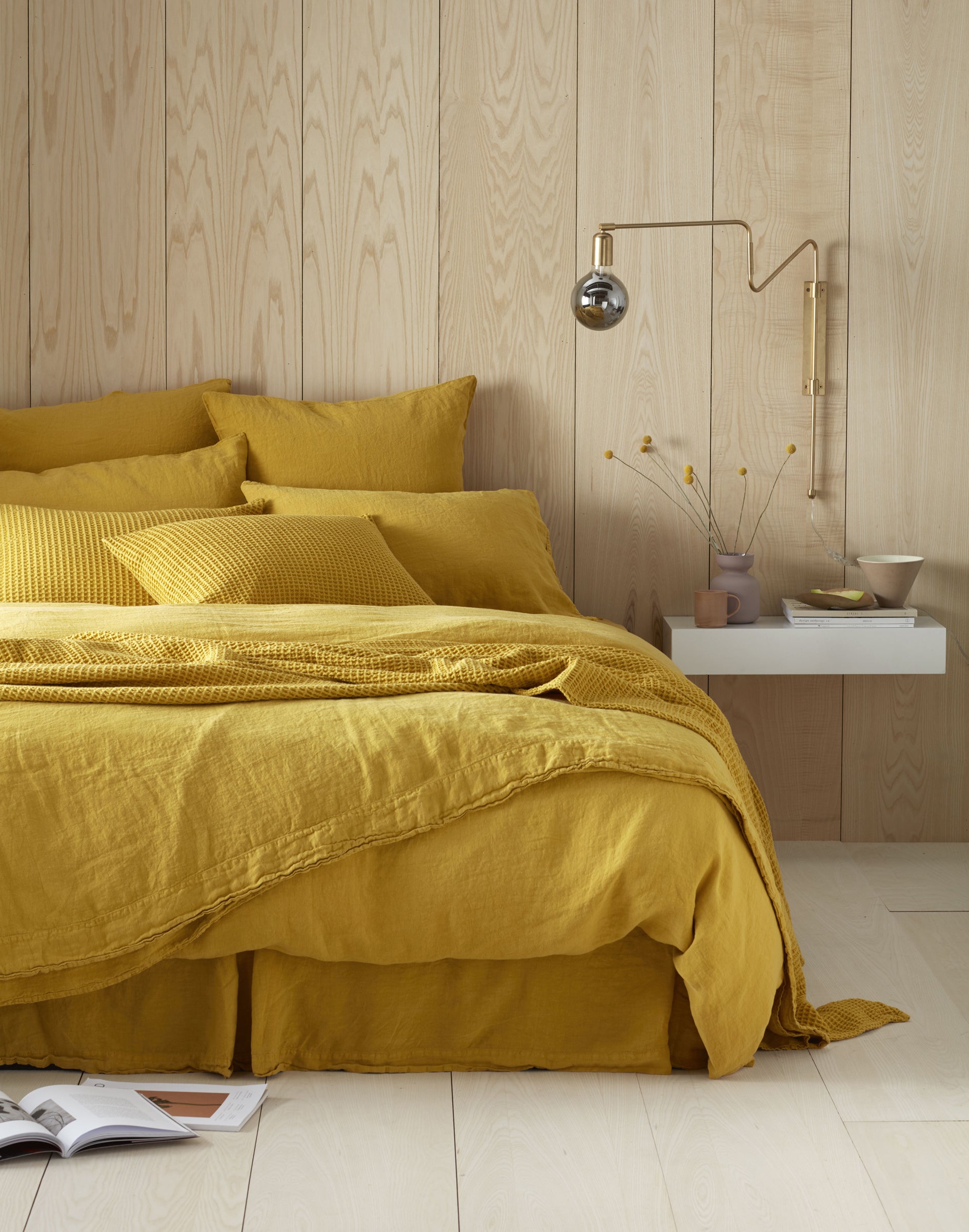 11. Mustard Yellow 100% Linen Bed Linen, Duvet Cover from £89.10 (Single) to £143.10 (Super King); Housewife Pillowcase from £16.20 (other items from a selection), Secret Linen Store