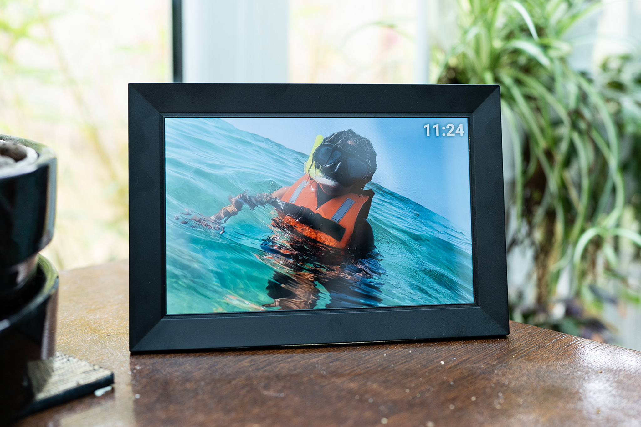 The myFirst frame is a bit of an enigma. It has some of the best hardware of all the frames on this list, coming with a chunky, good-looking wooden surround, a good strong stand, and an anti-reflection coating on the screen itself. The OS, which, like most of the frames on this list, seems to be some version of Android, is responsive, and there's a motion sensor so that it saves power by turning the screen off when no one’s around.