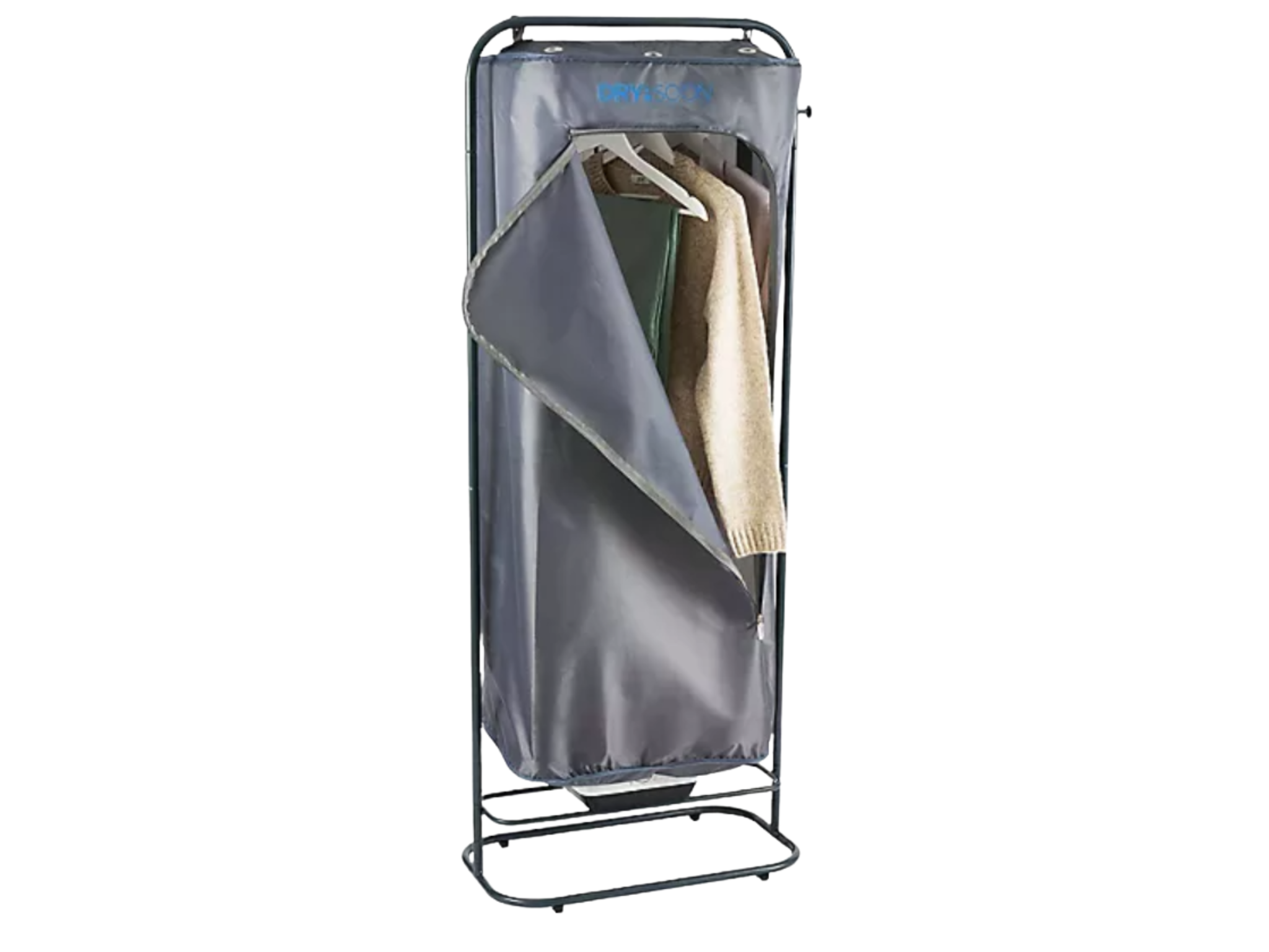 It truly is compact, taking up less space than a coat rack, and it’s powerful. With the cover on, the unit heats up to 70C, which means warm air is constantly circulating around your clothes to dry them fast. T-shirts and shirts can dry in just 60 minutes, while thicker fabrics, such as denim jeans, were mostly dry after two hours during testing. There’s a timer that will automatically shut off power at intervals of 30 minutes up to three hours.