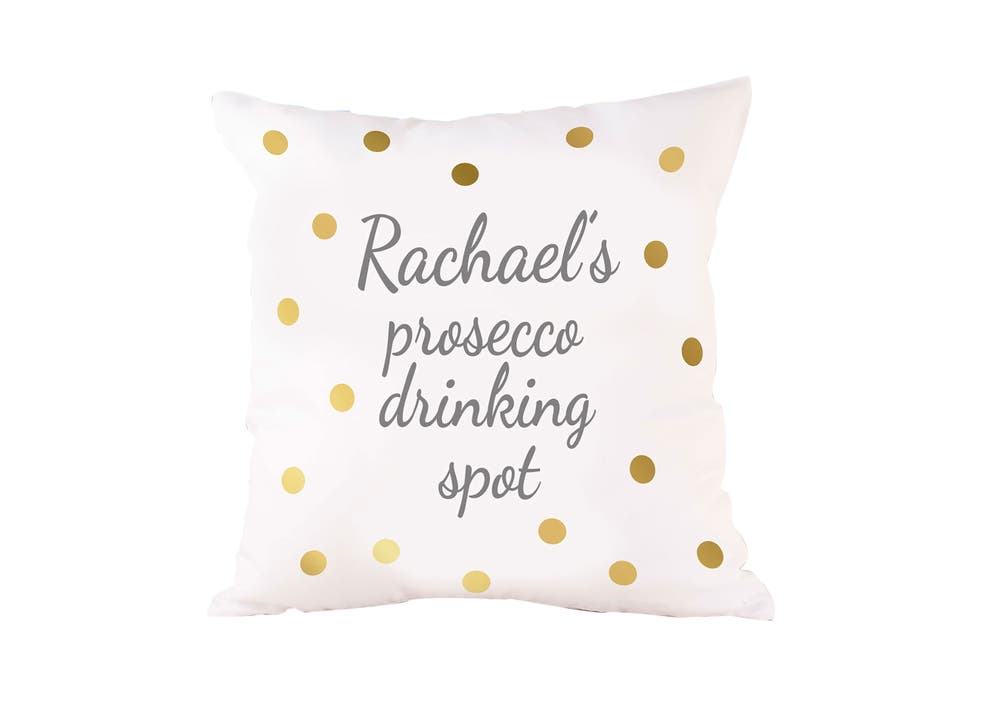 3. Personalised Natural Cushion – Prosecco Drinking Spot, £19.99, Getting Personal
