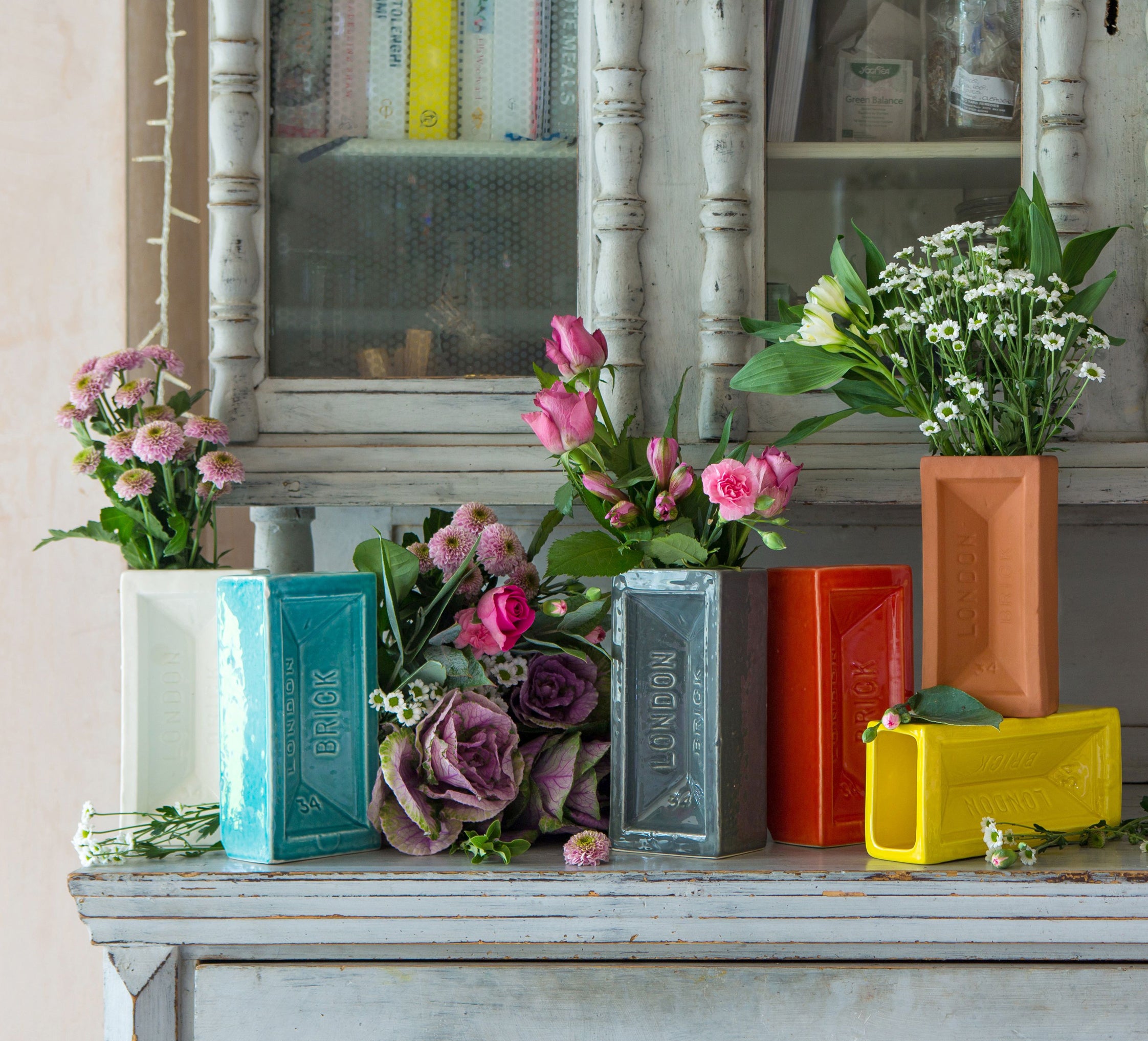 Another thing we’ve been finding pleasure in during lockdown is filling the house with bunches of flowers. Loads of them. A colourful brick vase will set off those blooms beautifully.
