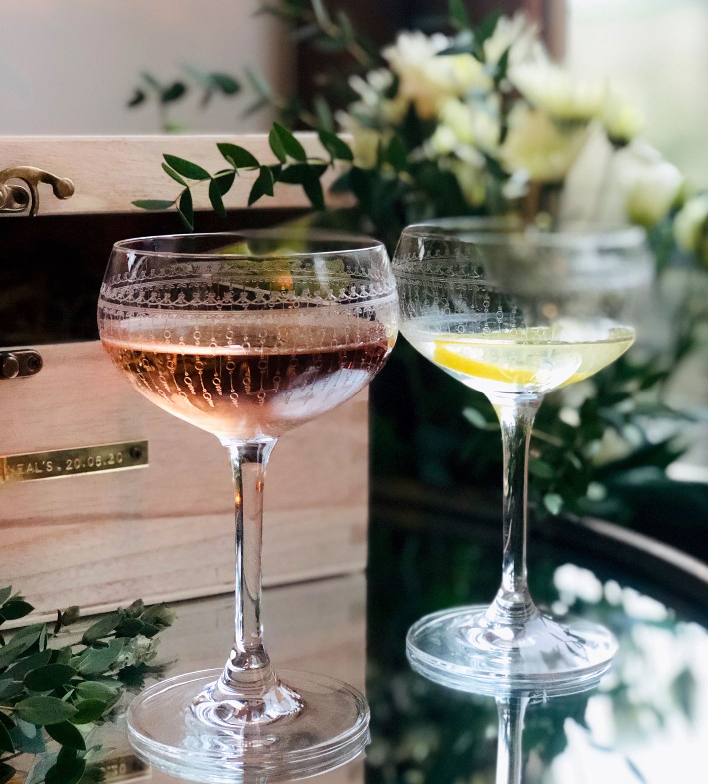 8. Personalized Set of Two Cocktail Glasses in a Box, by The Forest & Co, £44, Notonthehighstreet