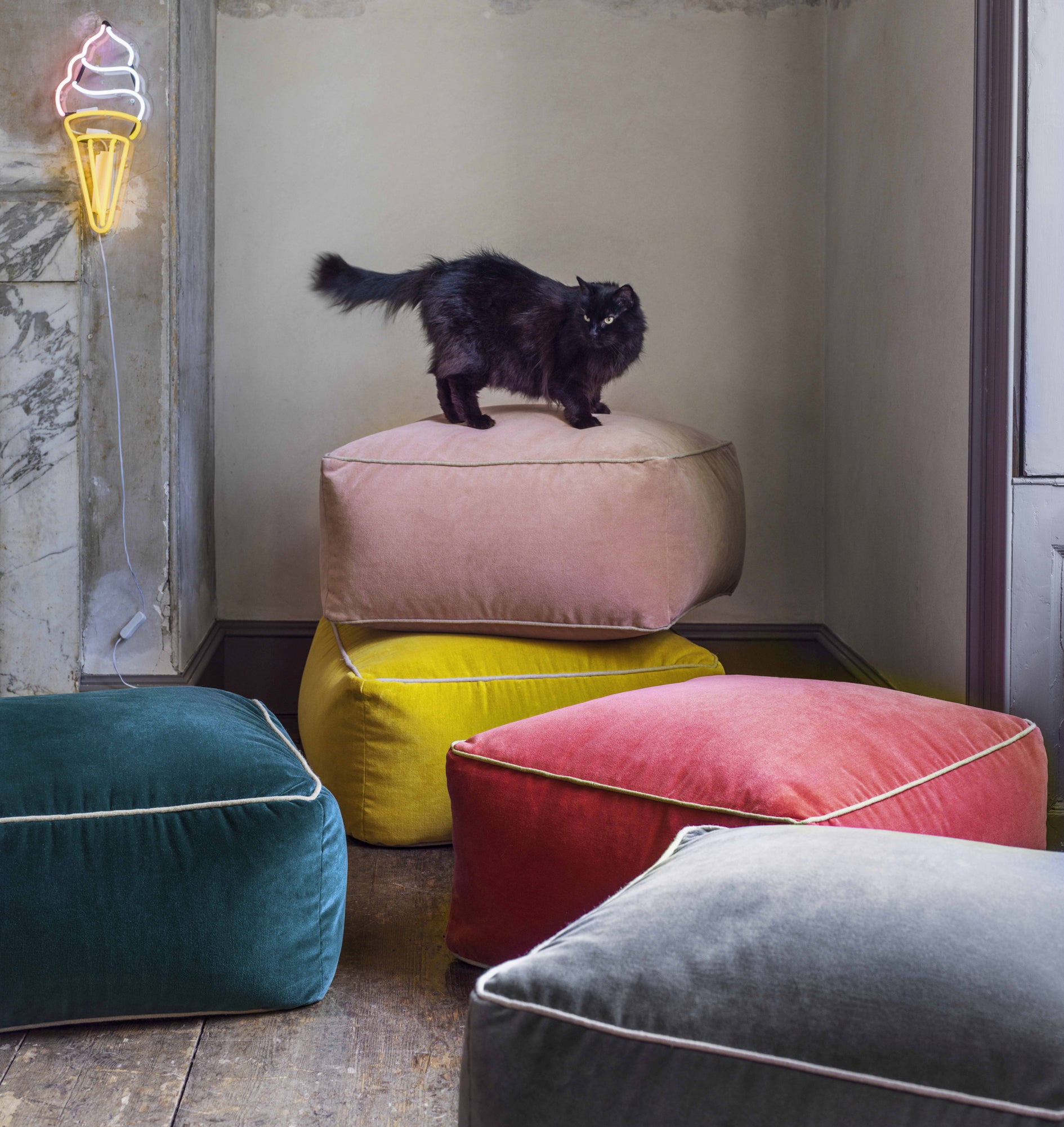 13. Velvet Pouffes, from £195, Graham and Green