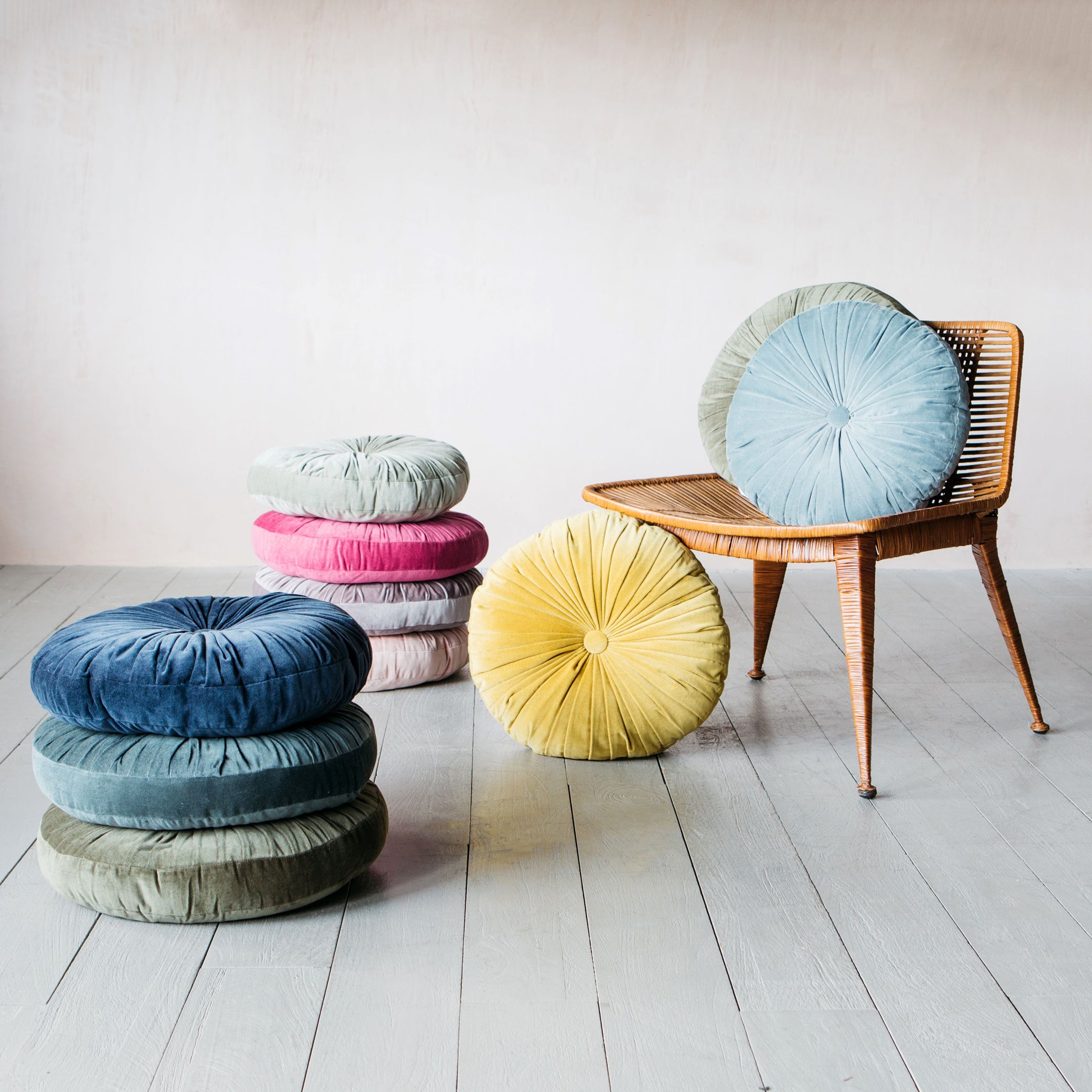 2. Round Ruched Velvet Cushions, £45 each, Graham & Green