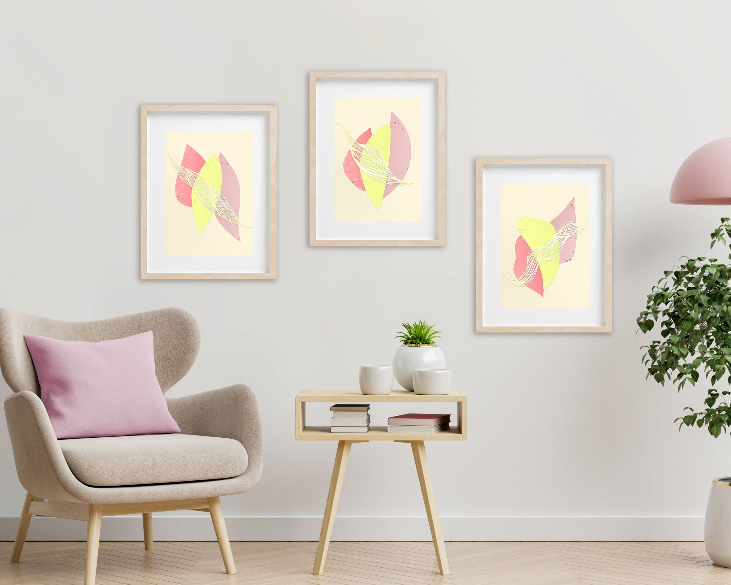 A tempting trio that really hits the spot, these abstract prints in sorbet shades work like a dream with bleached wood and Scandi style furniture.