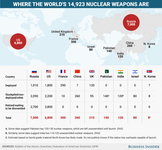 Experts disagree on how many deliverable nuclear weapons North Korea possesses, but more is known about other arsenals around the world. Below is a map that shows the best estimates of which countries have them and how many they have.