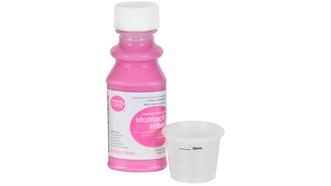 You can tell just by looking at Ready In Case liquid stomach relief that it’s a cheaper dupe of Pepto-Bismol. It also costs less than other in-house brands. Walgreens soothe ultra strength liquid, for example, is $4.99 for the same 4-ounce sizing.