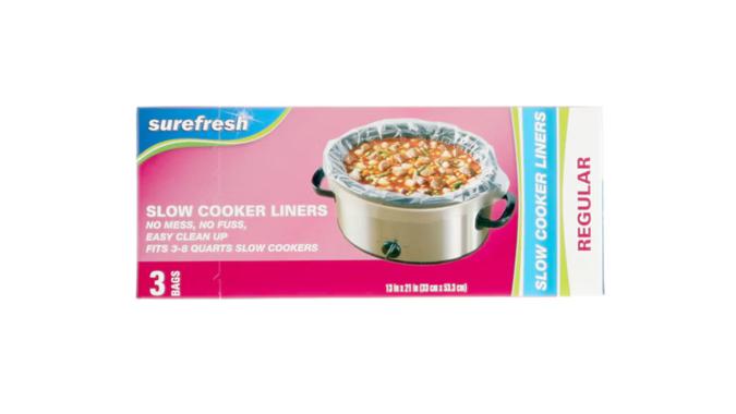 It’s cheaper to buy two boxes of Surefresh slow cooker liners at Dollar Tree than it is to shop for one box of Reynolds Kitchen liners at Target.