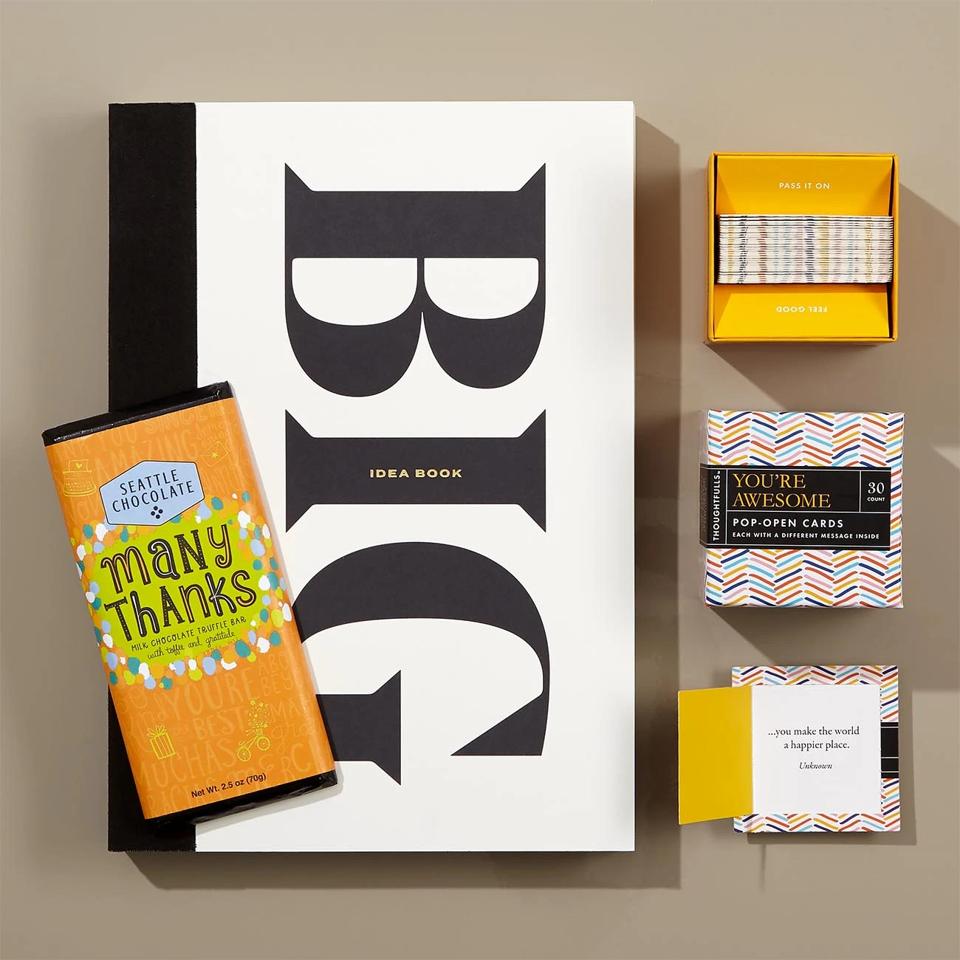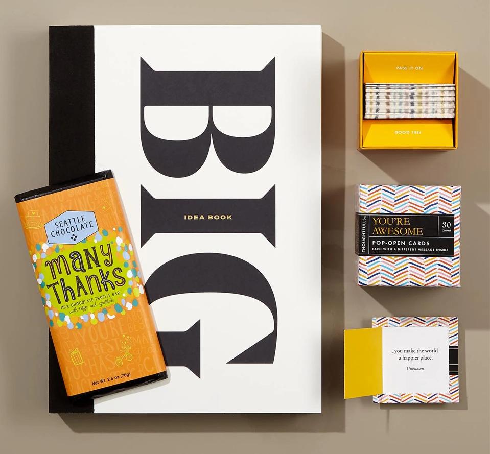 Knack is a go-to source for expertly curated gifts that match many different interests, price ranges and tastes. You can build a box from scratch or shop handpicked selections, such as this Big Time Thank You set, which comes with a sketch book for jotting down ideas, a toffee-truffle-chocolate bar and a box of pop-open cards with quotes that make anyone feel awesome. Also nice: Every box includes a personalized note and is customizable if you want to swap out or add additional items.
