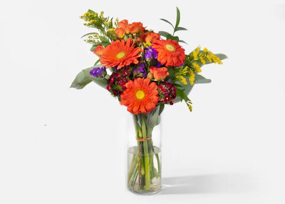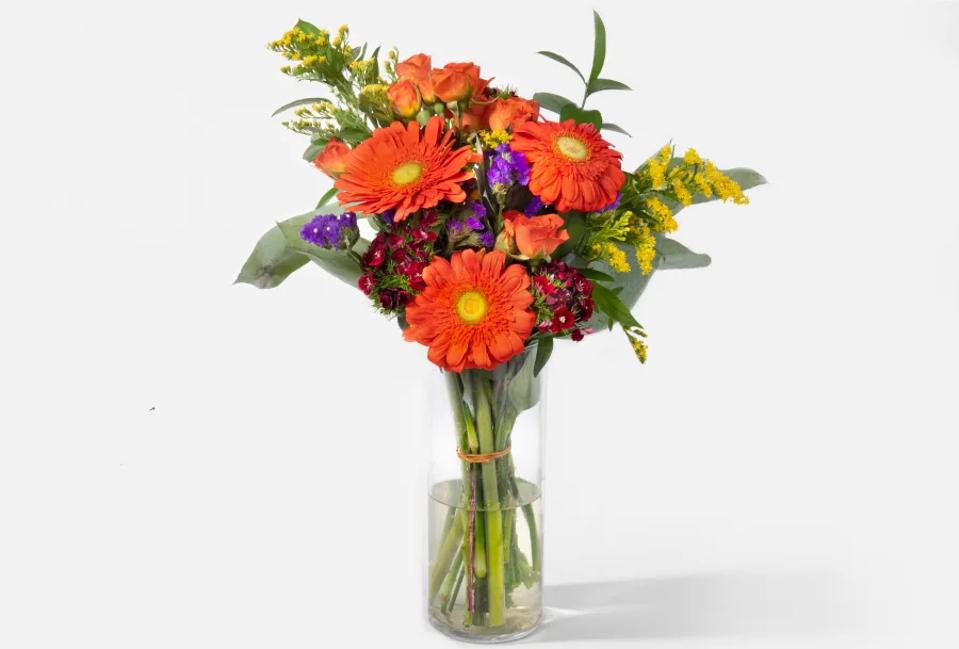 You can’t go wrong sending a small and tasteful vase of flowers. UrbanStems gets consistency high marks for its quality, farm fresh buds. This arrangement ships quickly and includes cheerful autumnal colors that brighten up any desk.