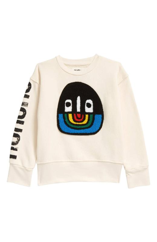 Stars, skulls and ninjas are cornerstones of Nununu’s versatile loungewear. Highly mix-n-matchable harem pants and zip-up hoodies have a rocker edge that will give your child a stylish leg up on the playground. This unisex fuzzy rainbow sweatshirt is a cozy choice for playful winter afternoons.