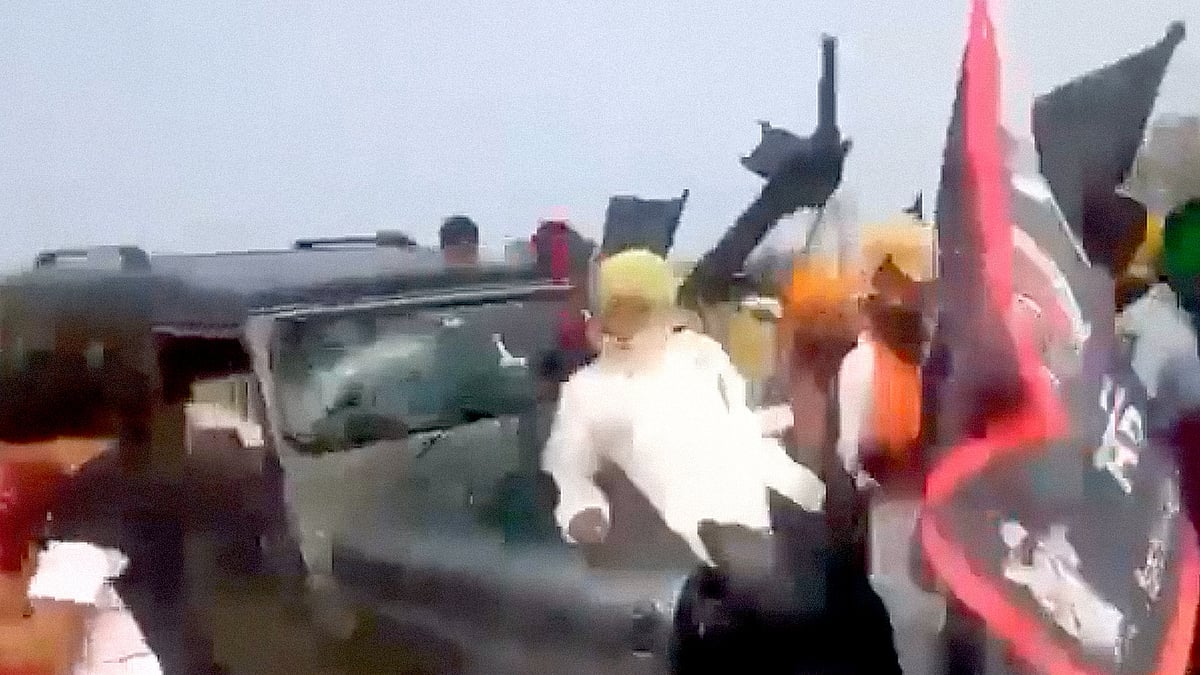 This is how India treats it's own citizens who after holding a peaceful protest by merely showing black flags were on their way back when son of minister @ajaymishrteni rammed his convoy of cars into them thereby killing 4 peaceful protesters.#ArrestMurderer_MonuMishra pic.twitter.com/WcmsDnzcA3