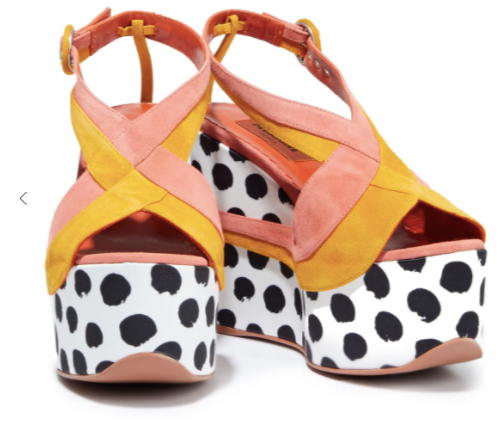Missoni Two-tone suede and polka-dot satin wedge slingback sandals