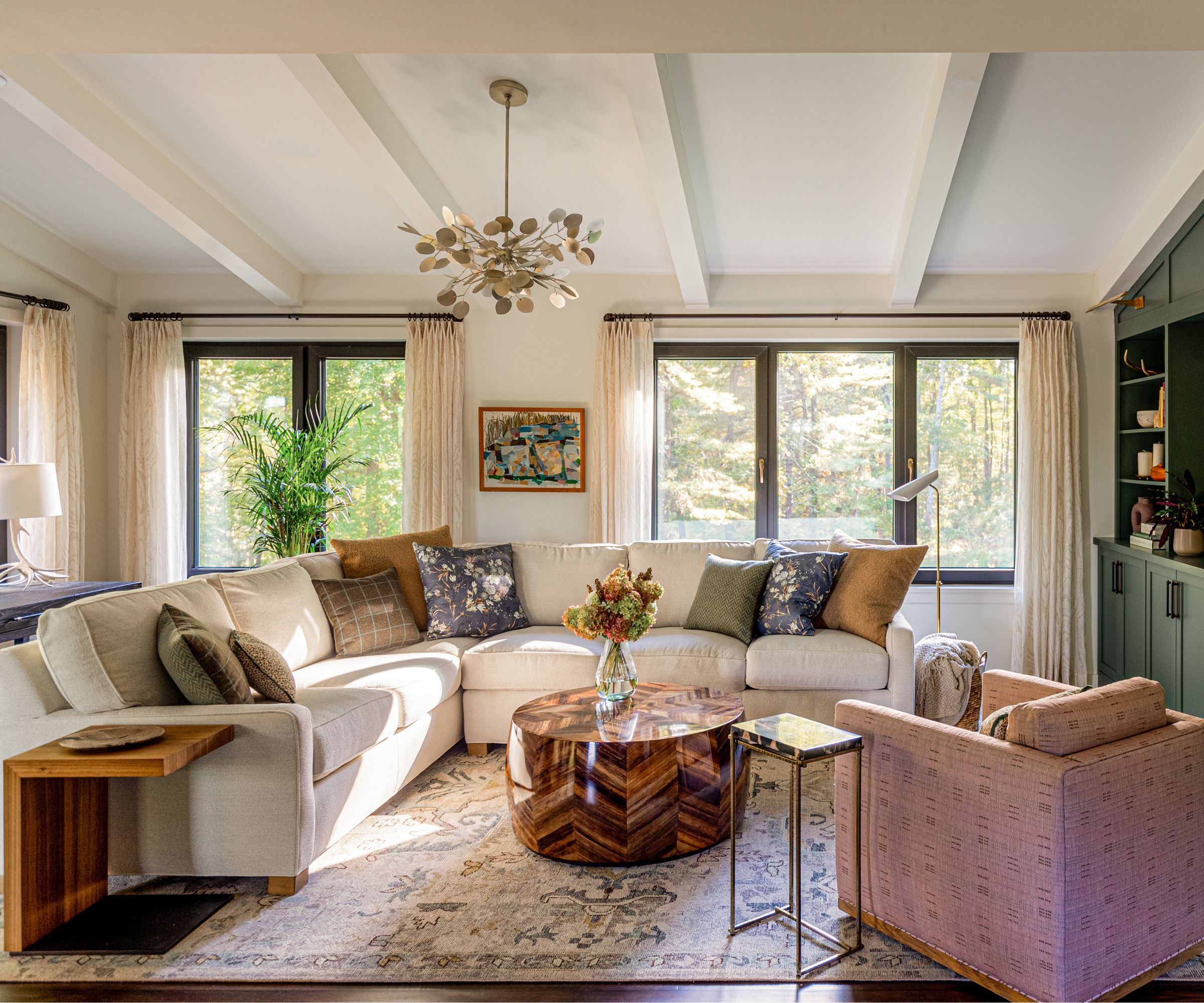 'Layer in a soft rug for depth and warmth underfoot, and incorporate natural wood elements which add richness and organic character,' adds Jeanne Barber.