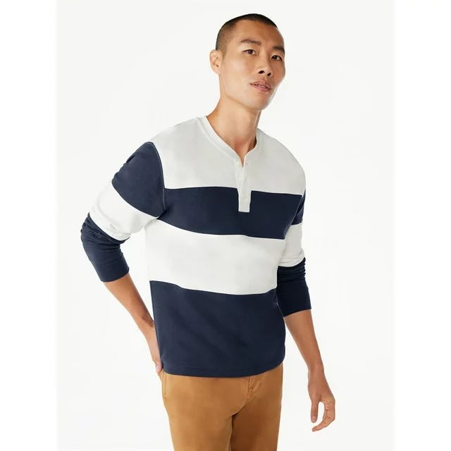 The backup to your basic T-shirt? It's this long-sleeved henley shirt with a traditional three-button placket and classic striped print. It's also made with 100% organic cotton for supreme softness.