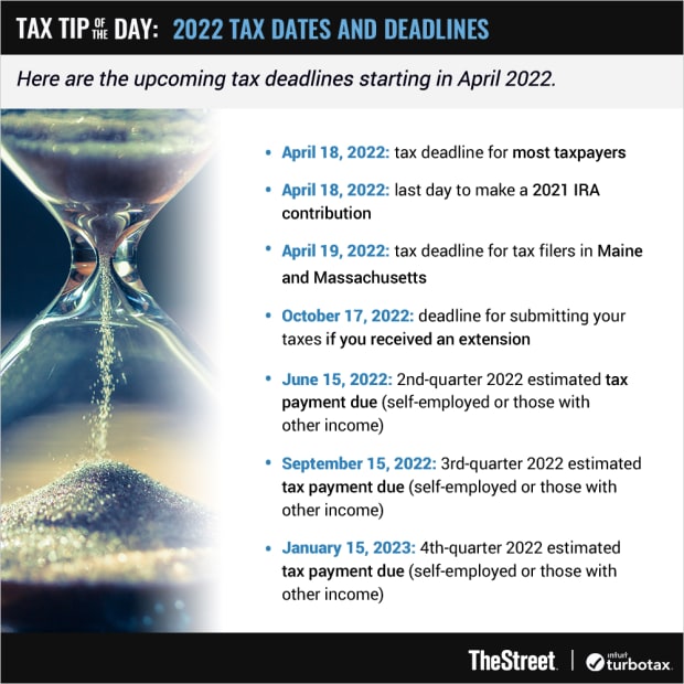 - April 18, 2022: tax deadline for most taxpayers
