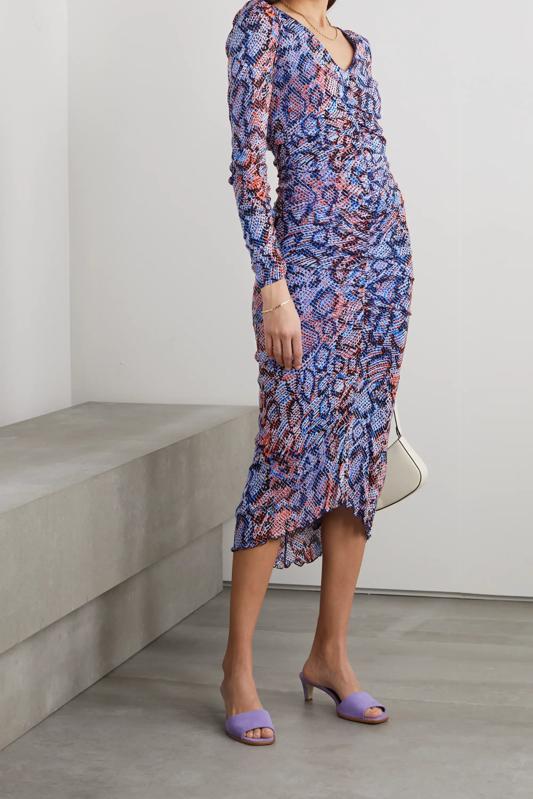 Diane Von Furstenberg Ruched Printed Chiffon Midi Dress