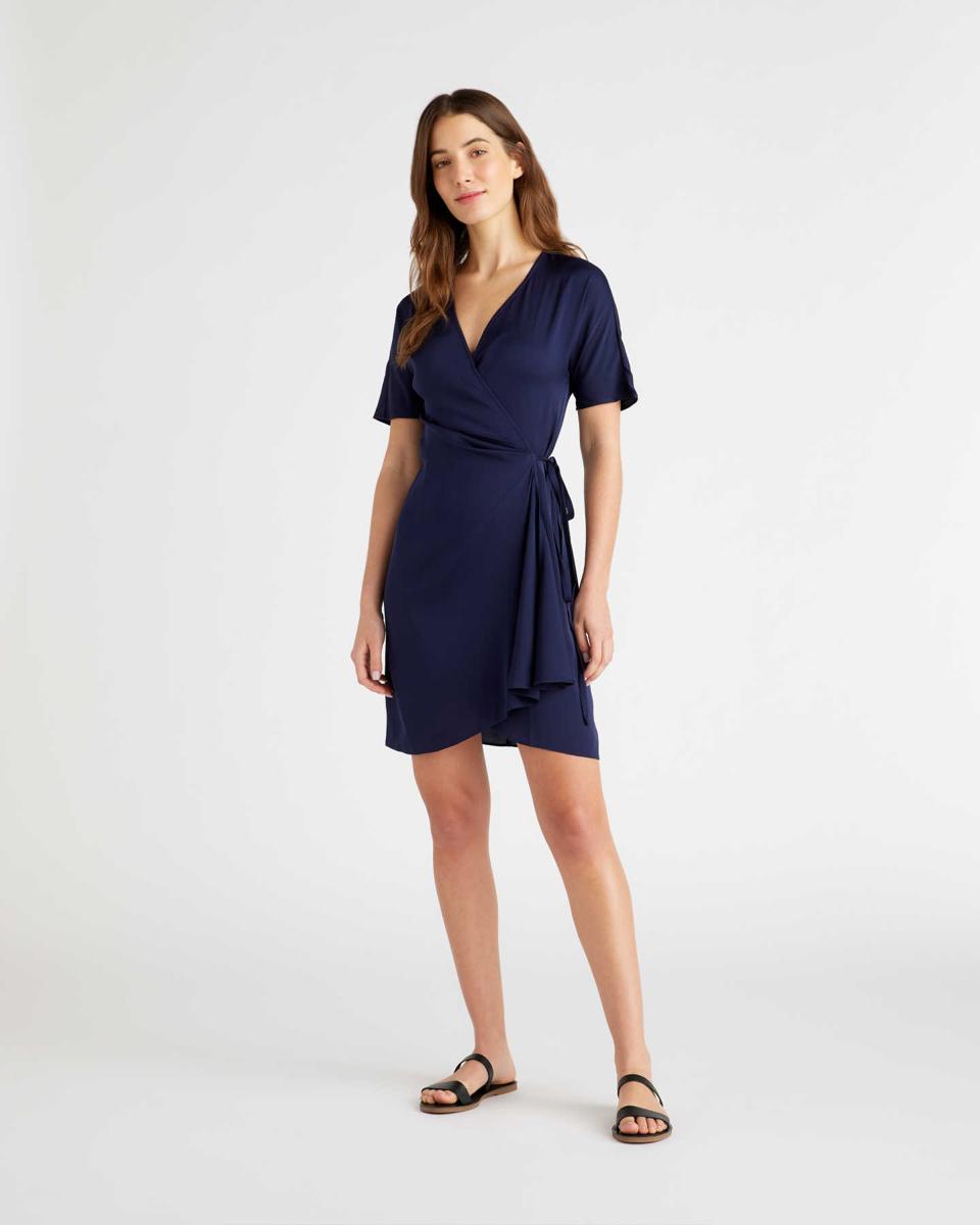 For less than $100, this dress has a lot to love about it. It hits slightly above the knee for a flattering effect, drapes beautifully on the body with an adjustable wrap belt and is cut from a washable silk that also has a bit of stretch for even more comfort.