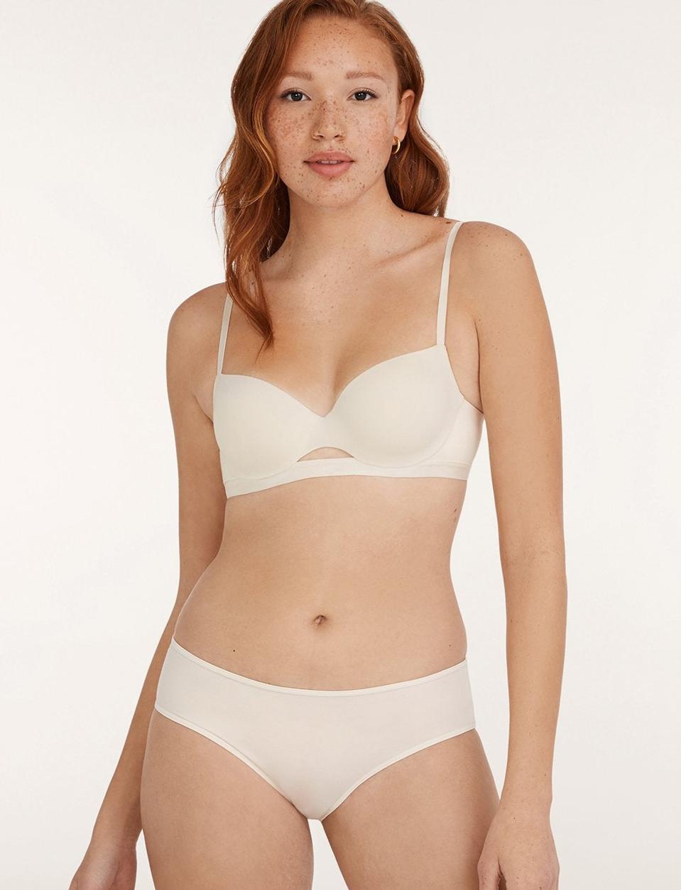 Lively thoughtfully blends athleisure and lingerie, but while some wireless bras can give off a squished, uni-boob look, this one has padding at the base of the cup to give a flattering, natural boost. It’s proof that trusty bras don’t have to be boring and bland—and perfect for wearing while lounging with your significant other, under work clothes (or for WFH) or for a night out. It’s available in nude and black, but also comes in unexpected shades such as smoke, olive and plum. (Psst, Lively also makes really cute swimwear.)