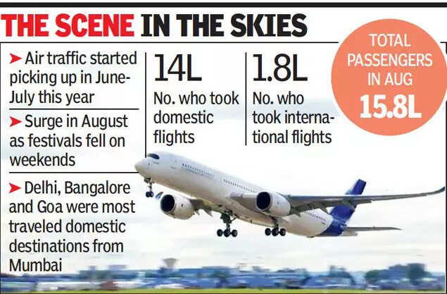 MUMBAI: Over 15 lakh passengers flew in or out of Mumbai airport in August, over three times as compared to last August, when only 4 lakh passengers passed through Mumbai airport.