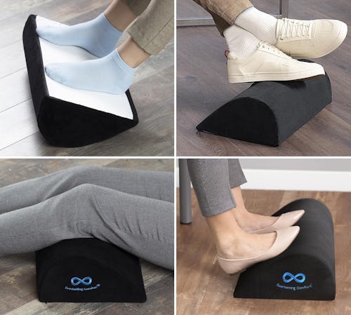 Give your legs and feet some proper cushioning and reap the rewards of an ergonomic sitting position with this under-desk footrest. The teardrop shape helps ease foot fatigue, while simultaneously lifting your feet to encourage better spinal alignment and posture. Choose from four different colors and place it flat on the floor or flip it over for a rocking motion if you’re feeling fidgety.