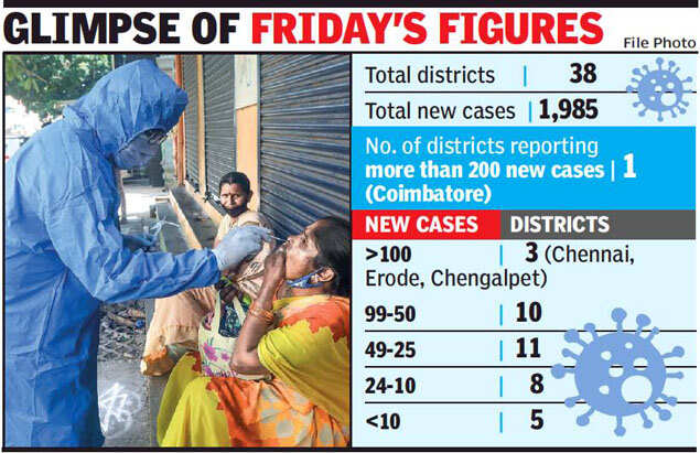 CHENNAI: Fresh cases saw a dip on Friday, when TN registered 1,985 new Covid-19 cases compared to 1,997 on Thursday.