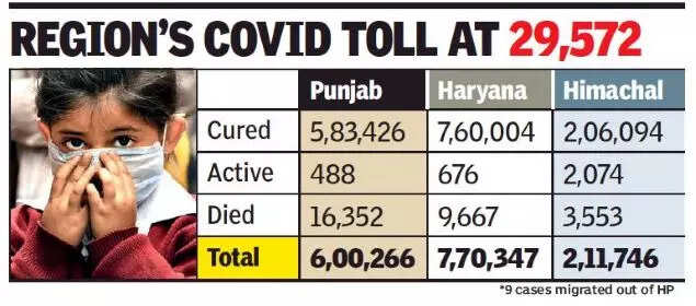 CHANDIGARH/SHIMLA: The northern states of Punjab, Haryana, and Himachal Pradesh recorded 171 cases of Covid-19 on Sunday along with seven deaths. Punjab recorded 41 new cases, Haryana reported 16 fresh infections and a death, while Himachal Pradesh detected 114 patients and lost six.