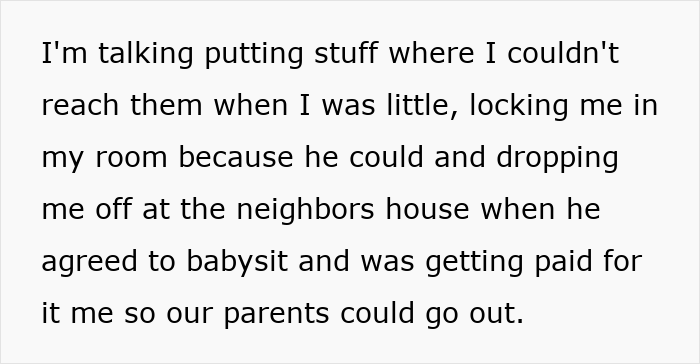 Siblings often fight, but this guy (James) took it to another level by making life hell for his younger brother, the 17-year-old original poster (OP). For as long as the teen could remember, he had constantly been bullied by being locked up or having things kept out of his reach. Apparently, James resented him for “stealing their parents from him.”