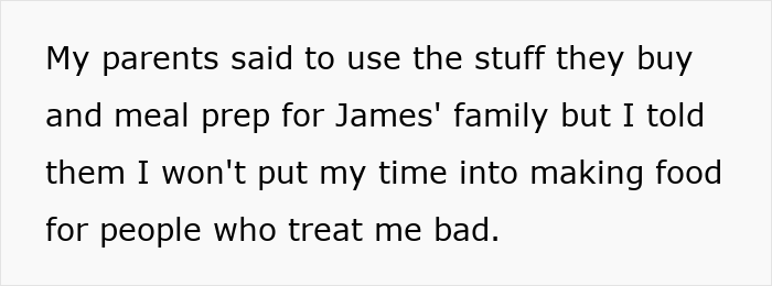 However, they don’t cook because OP does it for them. Well, James and his parents demanded that he help prep meals for the pregnant couple and their kids. Obviously, the poster refused, but he had to face everyone’s anger. James accused him of hurting his family, while his parents said that it was a chance to “build bridges.” Well, he was done with their toxicity and refused to budge.