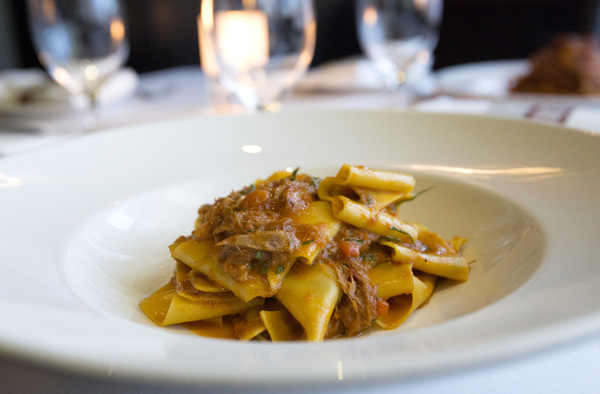 "The texture is silken and smooth and not too dense," he says as he lifts a ribbon of pasta. "So good, that pappardelle. Forget about it."
