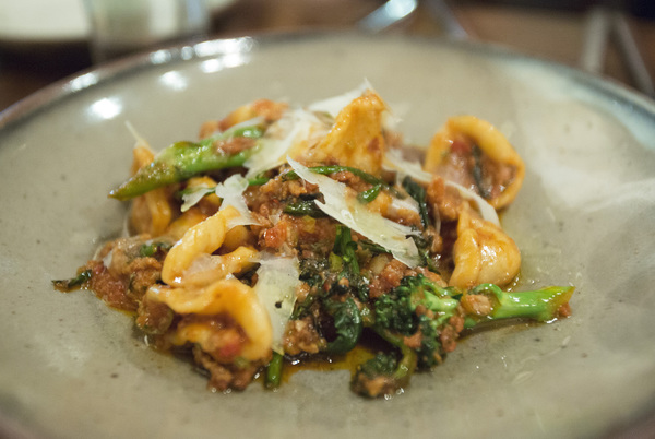 Conant handles the remaining rigatoni all'Amatriciana; orecchiette with sausage; and gnocchetti in an oxtail ragu napoletana like a champ, trying more than a little of each before proclaiming Funke a "pasta master."