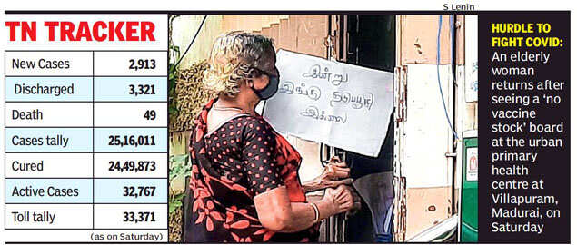CHENNAI: Most vaccination centres across the state were closed after more than 18 districts reported nil stock on Saturday.