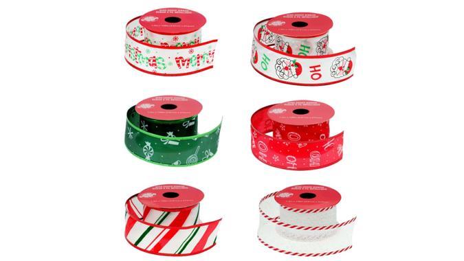 Get into the holiday spirit with a spool of Christmas-themed wide-edged ribbon.