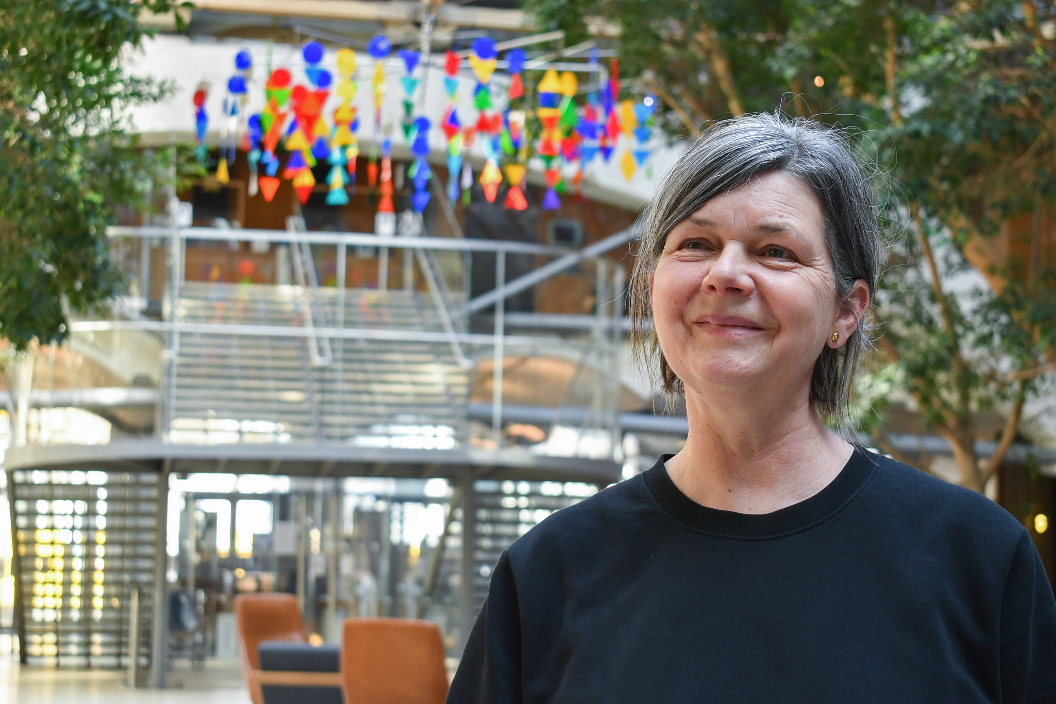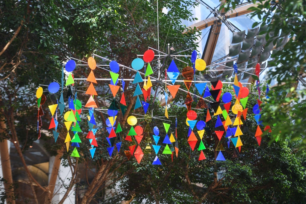 The mobile’s moving form is intended to represent the “carousel” of stories and people at the election, and the 64 colourful abstract shapes aim to signify politicians and voters, and to celebrate the diversity of the election.
