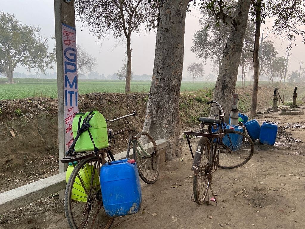 महानवई गांव एटा जिले में पड़ता है. यह हाथरस और एटा जिले के बॉर्डर पर है. देर शाम जब हम पहुंचे तो गांव से करीब एक किलोमीटर दूर से ही हमें लोग साईकिल-मोटरसाईकिल पर पानी भरकर ले जाते नज़र आने लगे. पानी भर कर ले जाने वालों में लड़कियों की संख्या कम थी. गांव वालों की मानें तो जिनके घर के पुरुष बाहर कमाने जाते हैं, उनके घर की महिलाएं ही पानी भरने जाती हैं.
