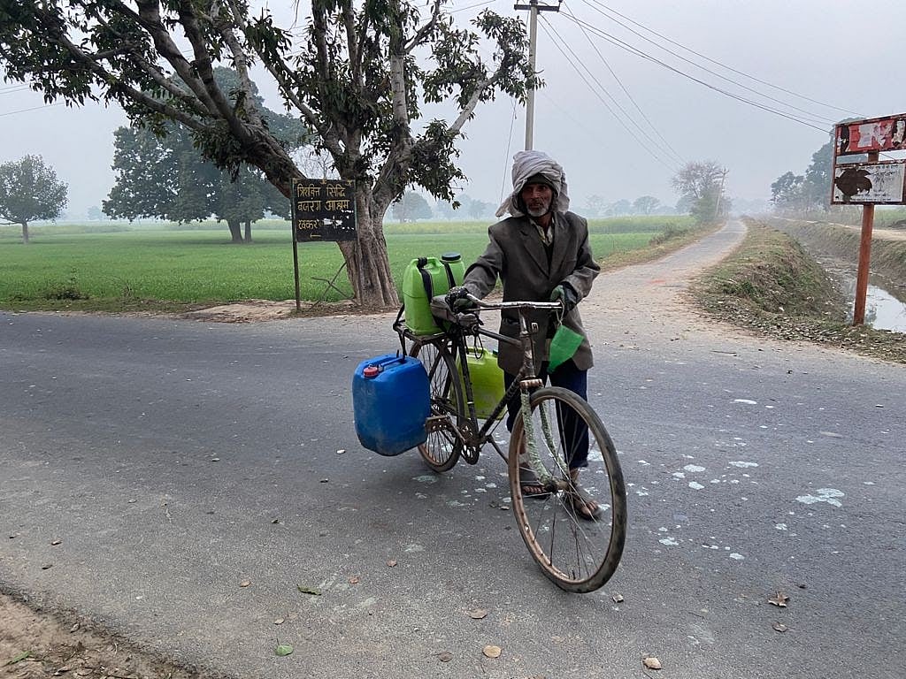 रिंकू गौतम हमें आसपास के गांवों के नाम बताते हैं जहां के लोग पानी की समस्या से जूझ रहे हैं. गौतम के मुताबिक, ‘‘हमारे पड़ोस के 20 गांवों के लोग इसी परेशानी से जूझ रहे हैं. लाडपुर, एहन, मिर्जापुर, कुभैना, श्याम नगरिया, सामंत नगरा, पावरा, महानवई - इन गांवों में पीने के लिए दो-दो किलोमीटर दूर से पानी लाया जाता है. अभी आप इन गांवों में जाएं तो लोग साईकिल, मोटरसाईकिल पर पानी का ड्रम लिए आते-जाते दिख जाएंगे.’’