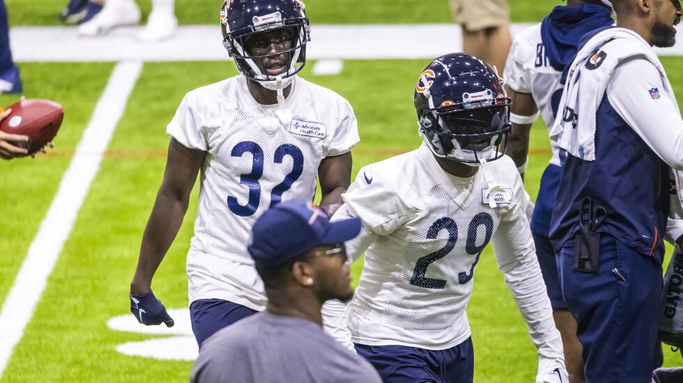 It’s way too early to speculate on that, with fifth-round rookie cornerback Terell Smith sharing first-team reps Saturday with Tyrique Stevenson, the second-round rookie cornerback the Bears hand-picked to replace Kindle Vildor opposite Jaylon Johnson.