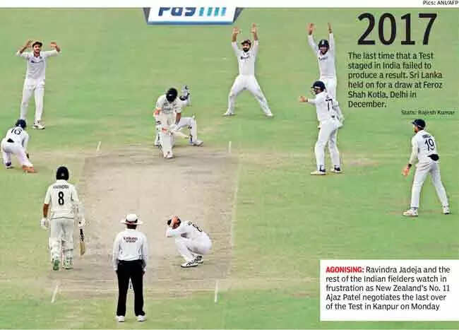 How often has it happened that the scoreboard has become redundant and the light meter readings the only numbers that mattered for an hour of a Test match? On a gloomy Kanpur day and on a dreary Green Park pitch, India and New Zealand managed to play out one of the most riveting drawn Test matches on Monday.