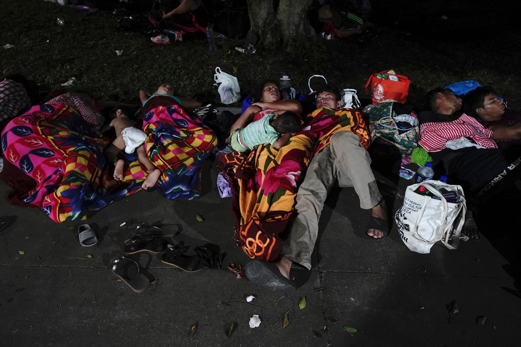 They made it only a few miles (kilometers) to the nearby village of Alvaro Obregon Saturday before stopping to rest for the night at a baseball field.