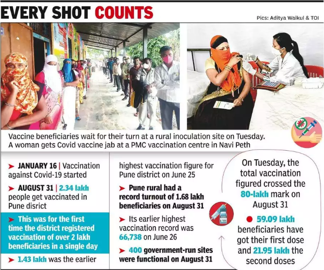Ayush Prasad, chief executive officer (CEO) of the Pune zilla parishad, told TOI, “This was not only a state record for the single-day vaccination figures, but we are sure that it could also be a national record. All the stakeholders actively participated in the drive. The result was the huge response.”
