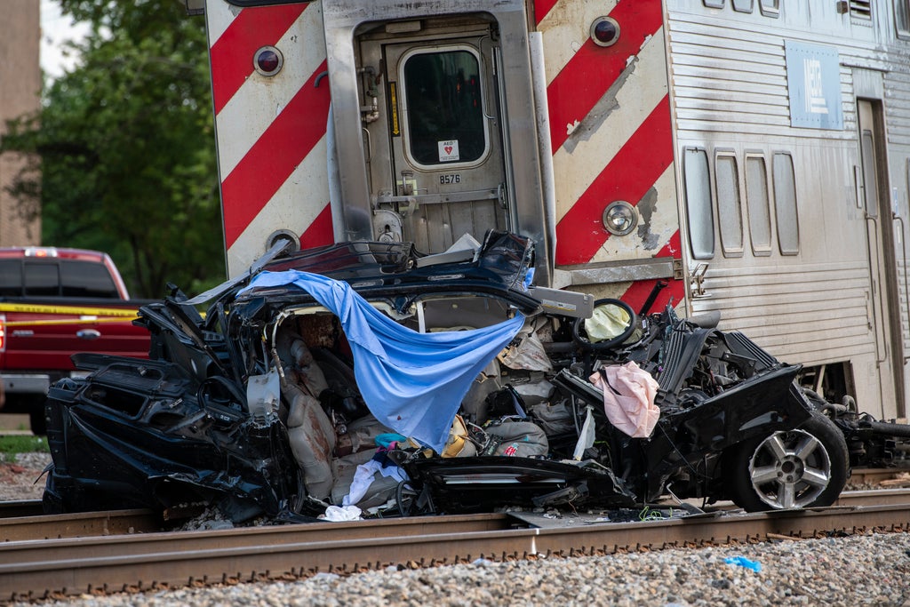 The force of the impact caused the train’s front car to partially derail and the vehicle caught fire, according to Metra spokeswoman Meg Reile.