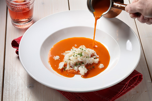 To finish the soup, I make a fast blender-friendly version of rouille. Some of the garlicky puree is used to season the tomato base before the fish is added. The rest is served at the table.