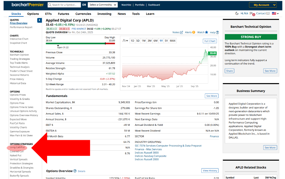 You can quickly find the Long Call Option Screener section from Applied Digital’s stock profile page on Barchart right here.
