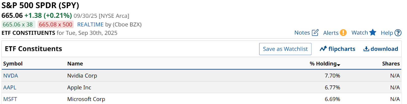 These three stocks – Nvidia (NVDA), Apple (AAPL), and Microsoft (MSFT) – account for more than 21% of the SPDR S&P 500 Trust ETF (SPY) and more than 26% of the Invesco QQQ ETF (QQQ). This is unprecedented in investing history.