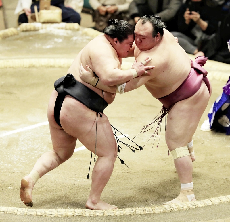 Meanwhile, No. 2 maegashira Mitakeumi (6-4) overcame No. 1 maegashira Endo (6-4), who suffered his third consecutive loss.