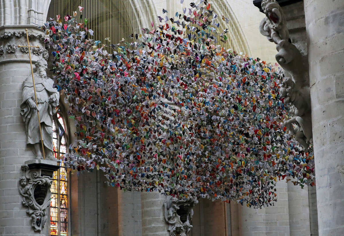 An art installation made of 20,325 origamis called "Origami For Life" by Belgian designer and artist Charles Kaisin is pictured at the Cathedral of St. Michael and St. Gudula, which aims to raise donations for a Belgian hospital in its fight against the coronavirus disease (COVID-19) pandemic, in Brussels, Belgium, August 10, 2020. REUTERS/Yves HermanAn art installation made of 20,325 origamis called "Origami For Life" by Belgian designer and artist Charles Kaisin is pictured at the Cathedral of St. Michael and St. Gudula, which aims to raise donations for a Belgian hospital in its fight against the coronavirus disease (COVID-19) pandemic, in Brussels, Belgium, August 10, 2020. REUTERS/Yves Herman