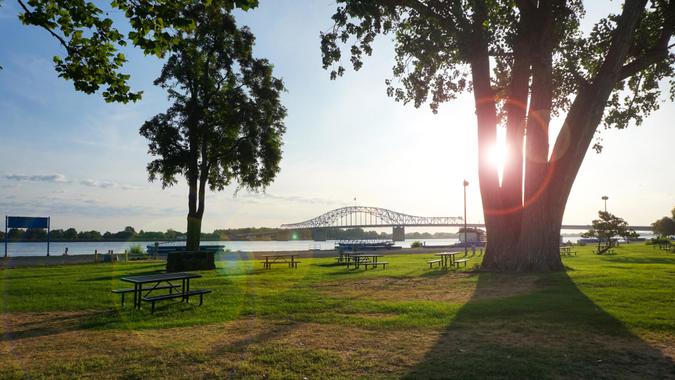 Methodology: GOBankingRates used data from Zillow Home Value Index to find cities with an average single-family home value $50,000 below the statewide average home value. The livability index was sourced from AreaVibes and all cities with a livability below 70 were removed as they represent a lower quality of life. The cost-of-living indexes were sourced from Sperling’s BestPlaces and using the national average expenditure costs as sourced from the Bureau of Labor Statistics Consumer Expenditure Survey, the average expenditure costs were calculated for each city. Assuming a 10% down payment and using the national average 30-year fixed mortgage rate, as sourced from the Federal Reserve Economic Data, the average mortgage was calculated for each city. Using the average mortgage and expenditure costs, the total cost of living was calculated for each city. The median household income was scored and weighted at 1.00, the average mortgage cost was scored and weighted at 1.00, the difference from a statewide home value was scored and sourced from 2.00, and the livability index was scored and sourced at 2.00. All the scores were summed and sorted to show the best hidden gem housing markets of 2025. All data is current as of Sept. 2, 2025.
